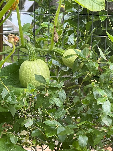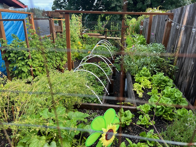 The picture to the right is my current garden. It has produced well this summer with strawberries all summer, snap peas season just ended. What I didn’t eat while watering, I froze the peas for salads this winter. Tomatoes are starting to ripen, lettece all summer and will continue into the winter. I thined the carrots and used them in my juicing, pumpkins are taking over the garden! Raspberry season is just beginning. The cilantro plants are getting ready to pick coriander seeds, which I use in salads and soups…bone broth. Cucumbers have been wounderful in my salads as well as the blueberrys. Sadly blueberry season it over, froze several containers. Potates did well and we are still eating. Lastly I am currently drying sage, oregano.