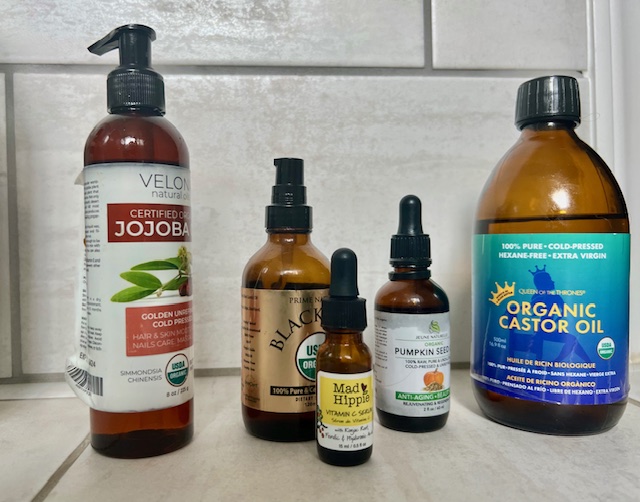 Today my skin needs are different than they were when I was in my twenties and thirties. In my “mature” years my skin has different needs. I apply my oils after I body brush and shower in the mornings before I put on make-up. Below are the five oils I use everyday for healthier, younger and smoother skin.